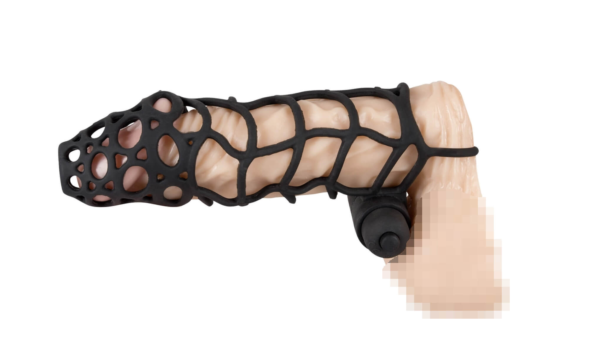 Black Velvets Penis Sleeve - mřížkovaný, vibrační návlek na penis (černý)