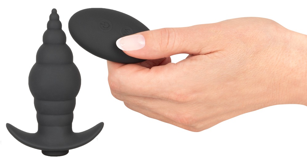 Vibrační anální kolík RC Butt Plug značky Black Velvets má kuželovitý tvar, má stimulující texturu a jemnou špičku – je ideální pro anální začátečníky.