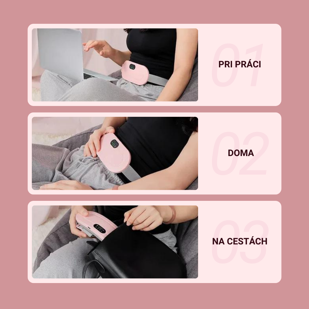 Vyzkoušejte hřejivý, vibrační menstruační pás, který uklidní vaše břicho!