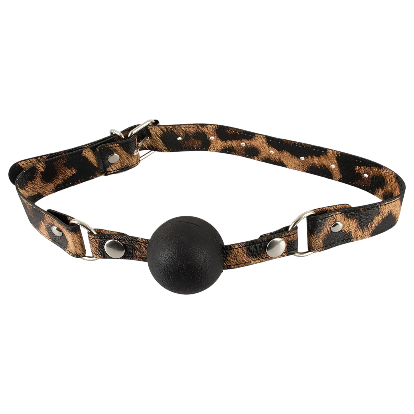 Lehce navržená, pružná, kousatelná ústní kulička, s dobrou pevností v tahu, s řemínkem ze syntetické kůže, jehož velikost lze nastavit na požadovanou velikost pomocí kovové přezky.
