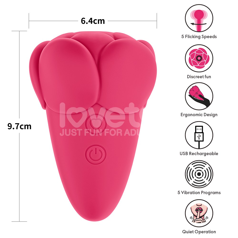 Zažijte intenzivní potěšení s luxusním vibrátorem LoveToy Flicker. Jeho jedinečný design ve tvaru květu ukrývá centrální jazýček, který se jemně pohybuje a realisticky napodobuje dráždivé lízání. Díky kombinaci 5 vibračních režimů a 5 rychlostí mihotání nabízí hlubokou stimulaci a nezapomenutelné okamžiky rozkoše.