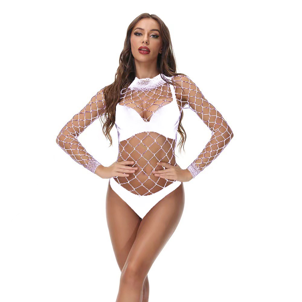MARLYN FISHNET THONG BODYSUIT WHITE S-L