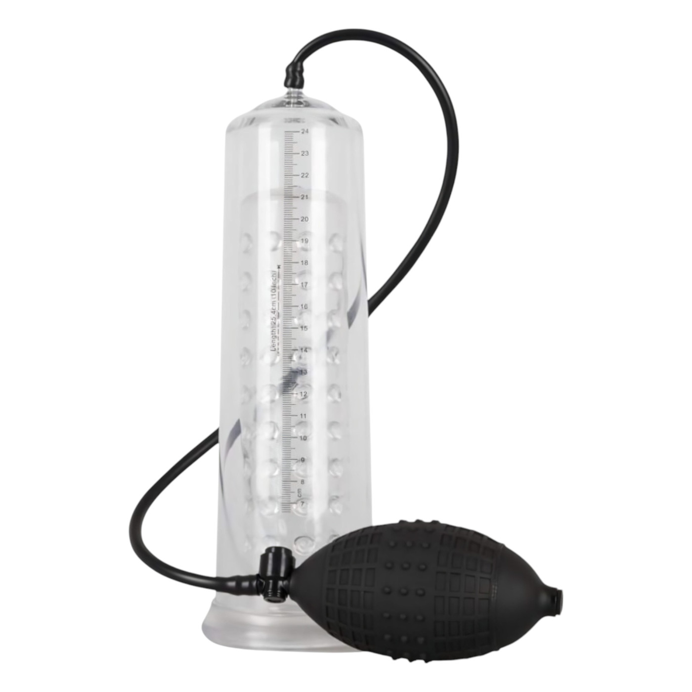 Vakuová pumpa na penis s příjemným sacím efektem a bonusem navíc – vnitřní manžetou s kuličkami, která přidává stimulaci během používání. Pumpa pomáhá podpořit prokrvení a tím i pevnější erekci. Výsledek napumpování si snadno zkontrolujete díky měrce na válci.