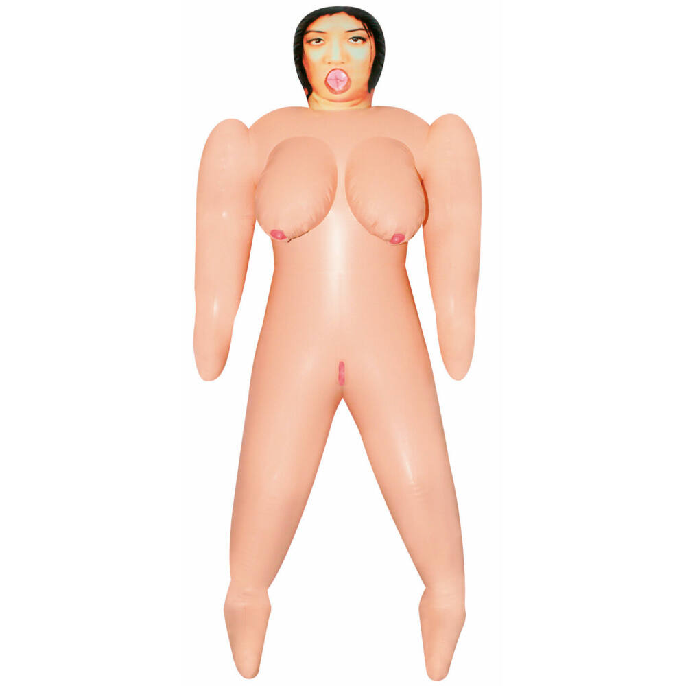 Nafukovací sexuální panenka v životní velikosti, s obrovskými prsy, bradavkami velikosti mincí, plné tělo, pro milovnice extra velikostí. Se třemi těsnými, smyslnými otvory (ústa, vagína, konečník).