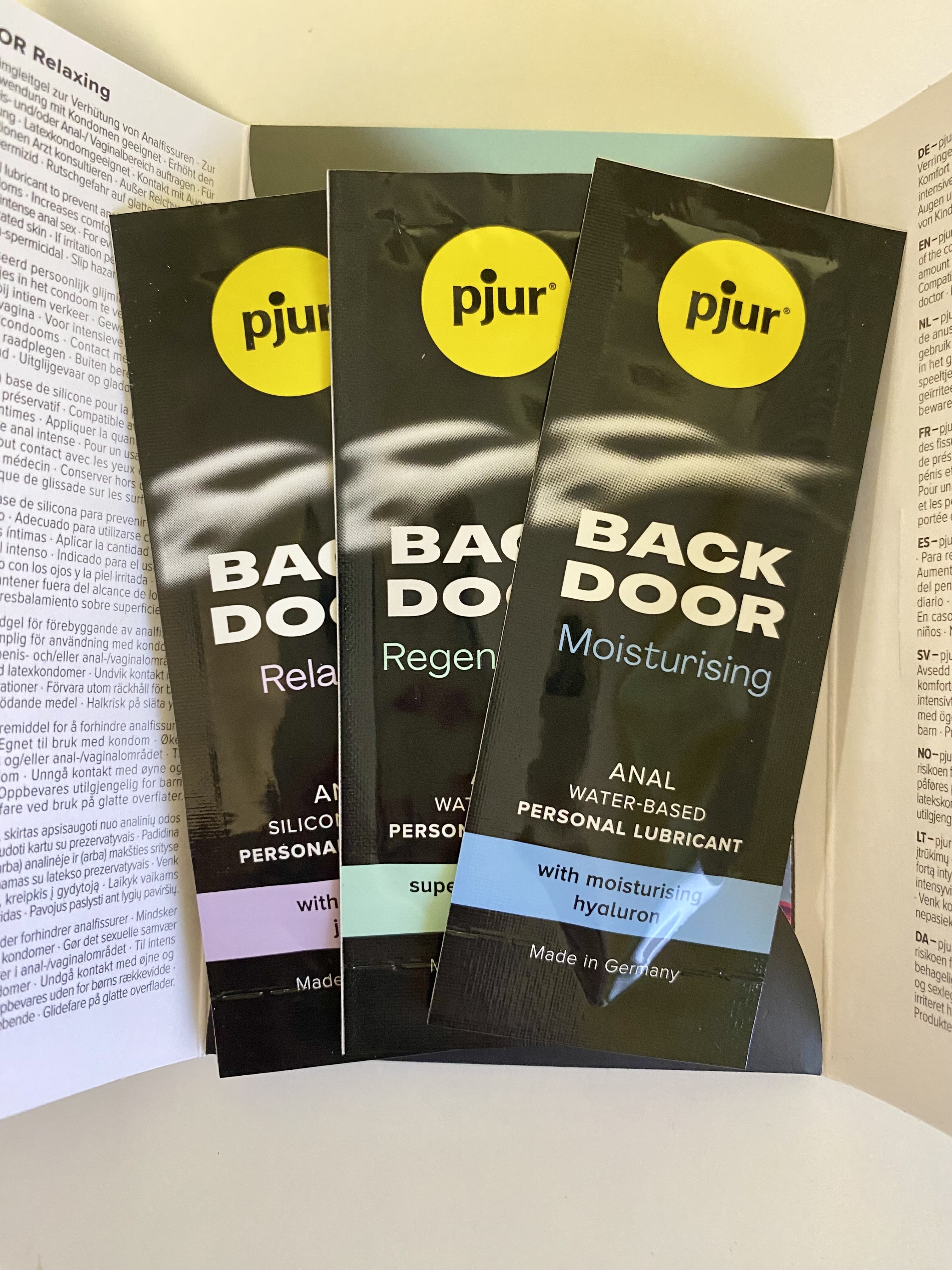 pjur Back Door (silicone-based) – extra kluzký lubrikant navržený pro anální sex; často obohacený složkami pro lepší „vyplnění“ (např. kyselina hyaluronová).