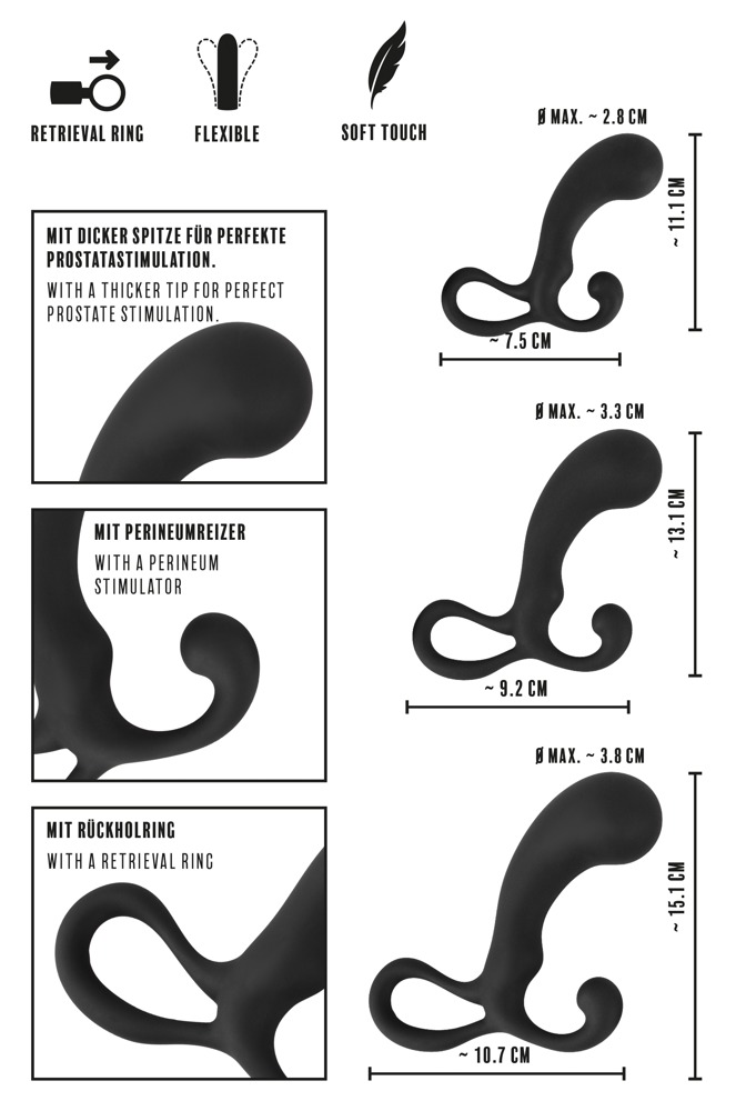 Úzce tvarované dildo prostaty se zvýrazněnou hlavou pro intenzivní rozmazlování mužů a procvičování svalů svěrače! Díky speciálnímu designu a 3-dílné sadě je ideální pro začátečníky i pokročilé.