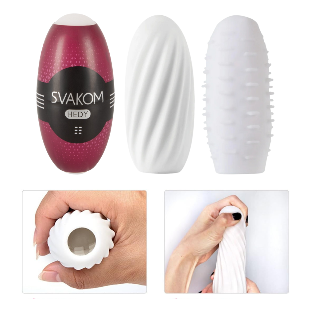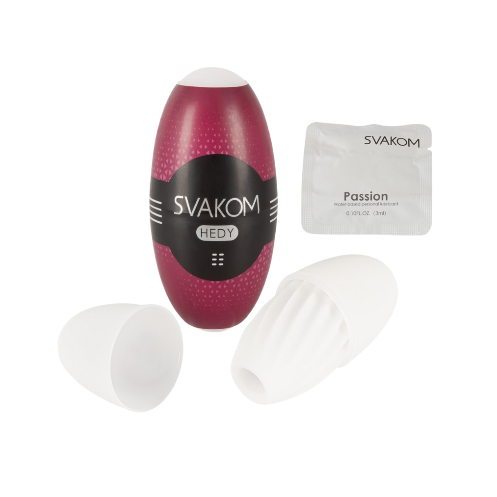 Masturbátor Hedy od Svakem je dodáván v diskrétním oválném pouzdře a je 5-10krát opakovaně použitelný.