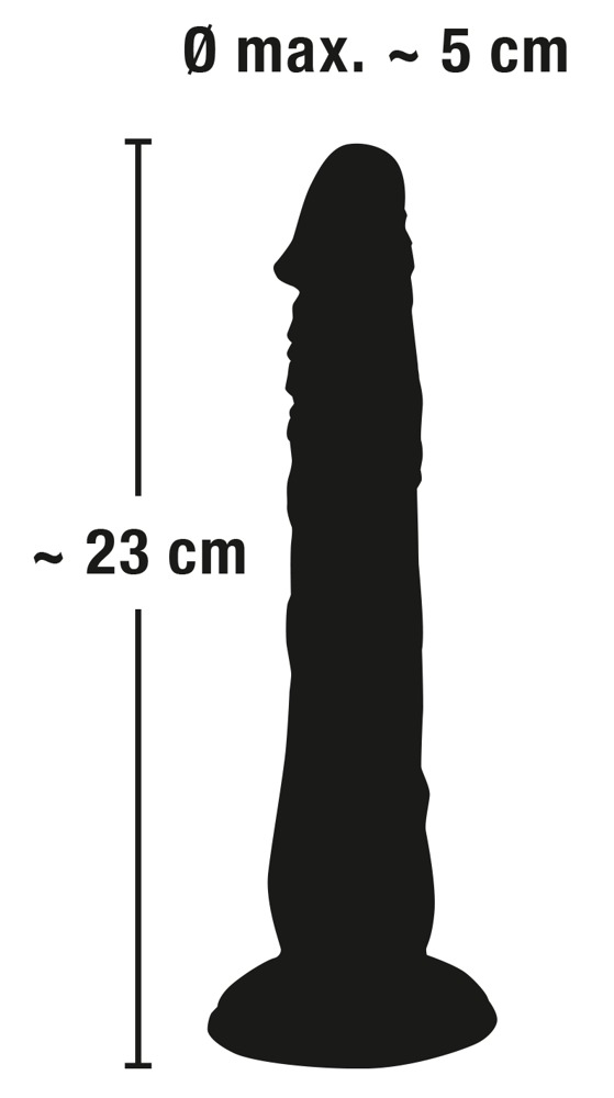 Věrná kopie penisu s přísavkami, vyrobená z pružného, ohebného materiálu, příjemného na dotek.