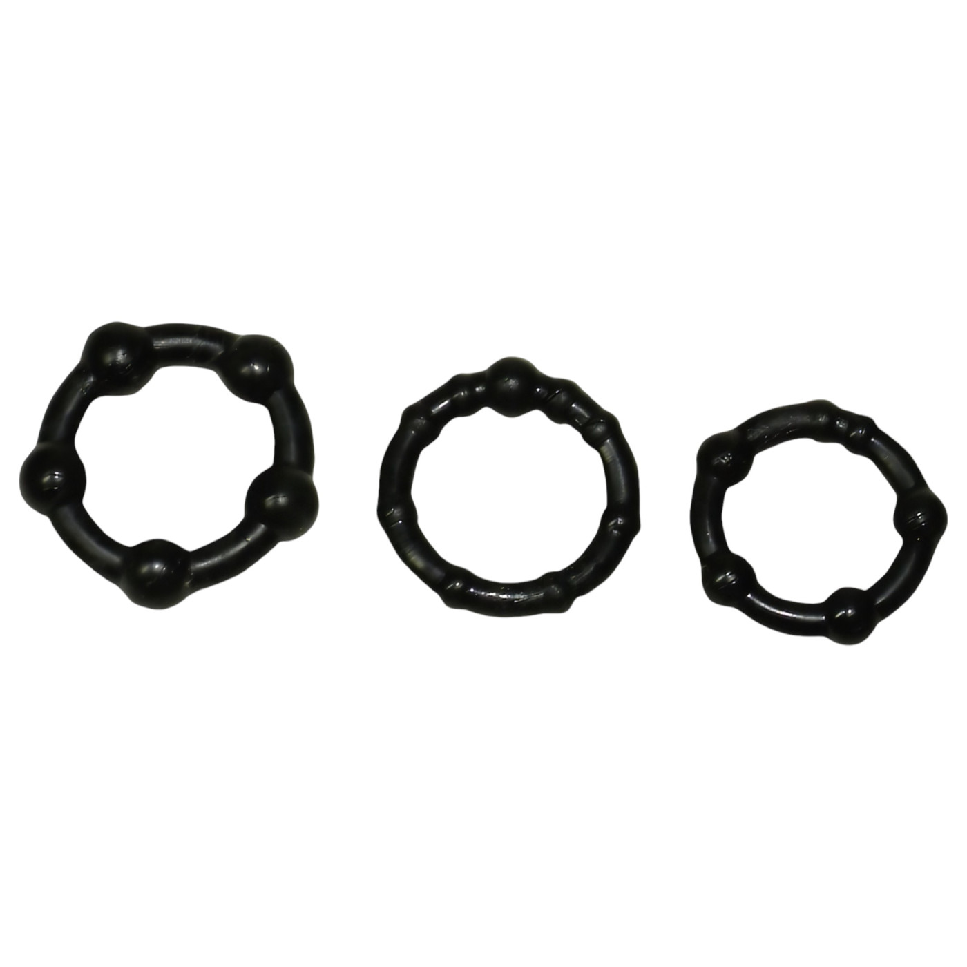 Sada 3 ks kroužků na penis, s různými stimulačními kuličkovitými povrchy, které hýčkají partnerku extra rozkoší.